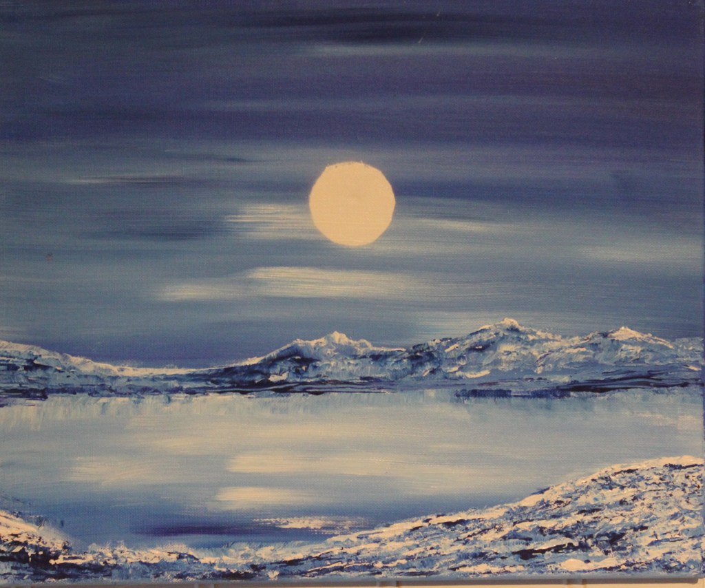 Dersom det ikke fremkommer spesifikt av bildets navn; spør aldri hvor motivet er hentet fra. Det kommer innenfra, motivert og landskap jeg har opplevd, noe jeg har sett eller opplevd i naturen. Når det gjelder surrealistiske, abstrakte bilder setter jeg gjerne ekstra stor pris på at du ikke spør hvor det kommer fra…..