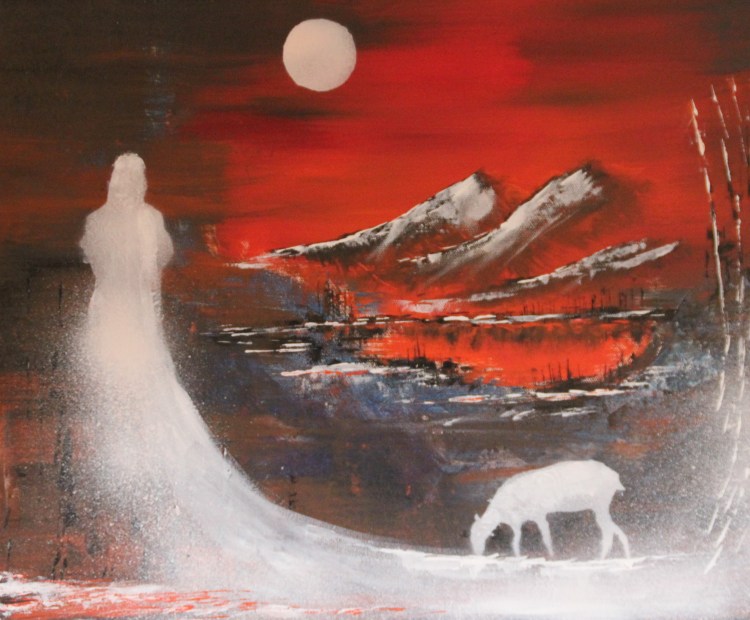 Mysterier i nord. 38 x 46 cm flatt lerret. Kr. 1400.-
