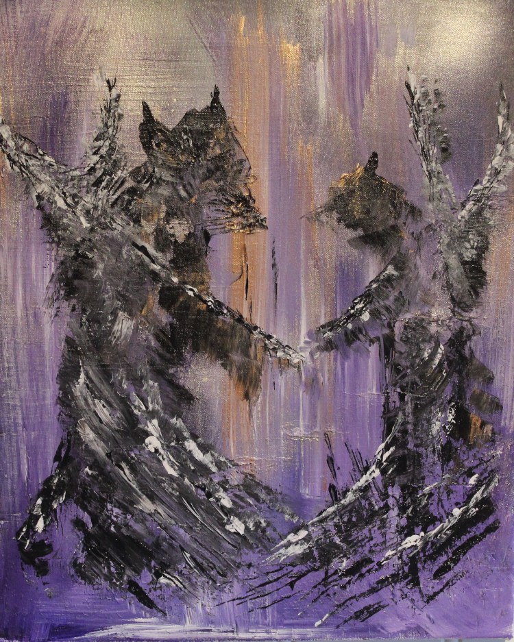 B – 149 38 x 46 cm flatt lerret. Ulvedans. Kr. 1050.-